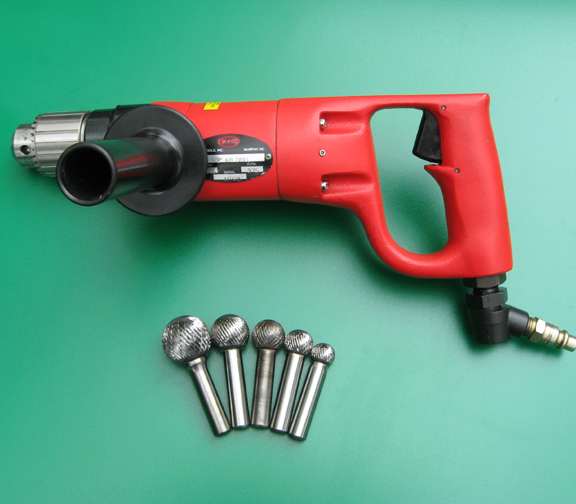 Pneumatic DrillThis 1-HP x 400 RPM Drill, with its self-contained oiler, is used to power our cleaning tools, such as ball burrs and wire brushes. |